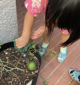 一昨年の2020年の春にも、子ども達がスイカの種を蒔きました。