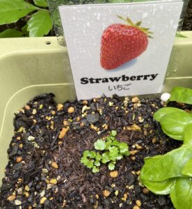 約8週間後、7月17日、小さな苺の芽が出ていました。
