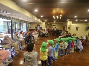 歌のプレゼントでは、一緒に歌ったり、手遊び歌も一緒にやってくれて、たくさんの拍手をいただきました。