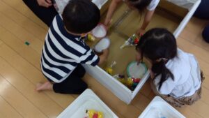 ゲーム形式で、お友だちと「だれが多く釣れたかな?」と釣れた魚の