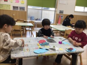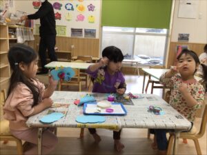 出来上がったお面を見せあって、にこにこ嬉しそうな子どもたちの姿が見られました👹✨
