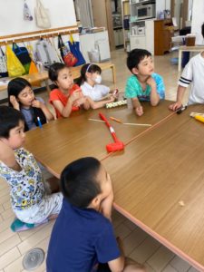5月の理科実験は、物の重心を知ろう!という実験を行いました。