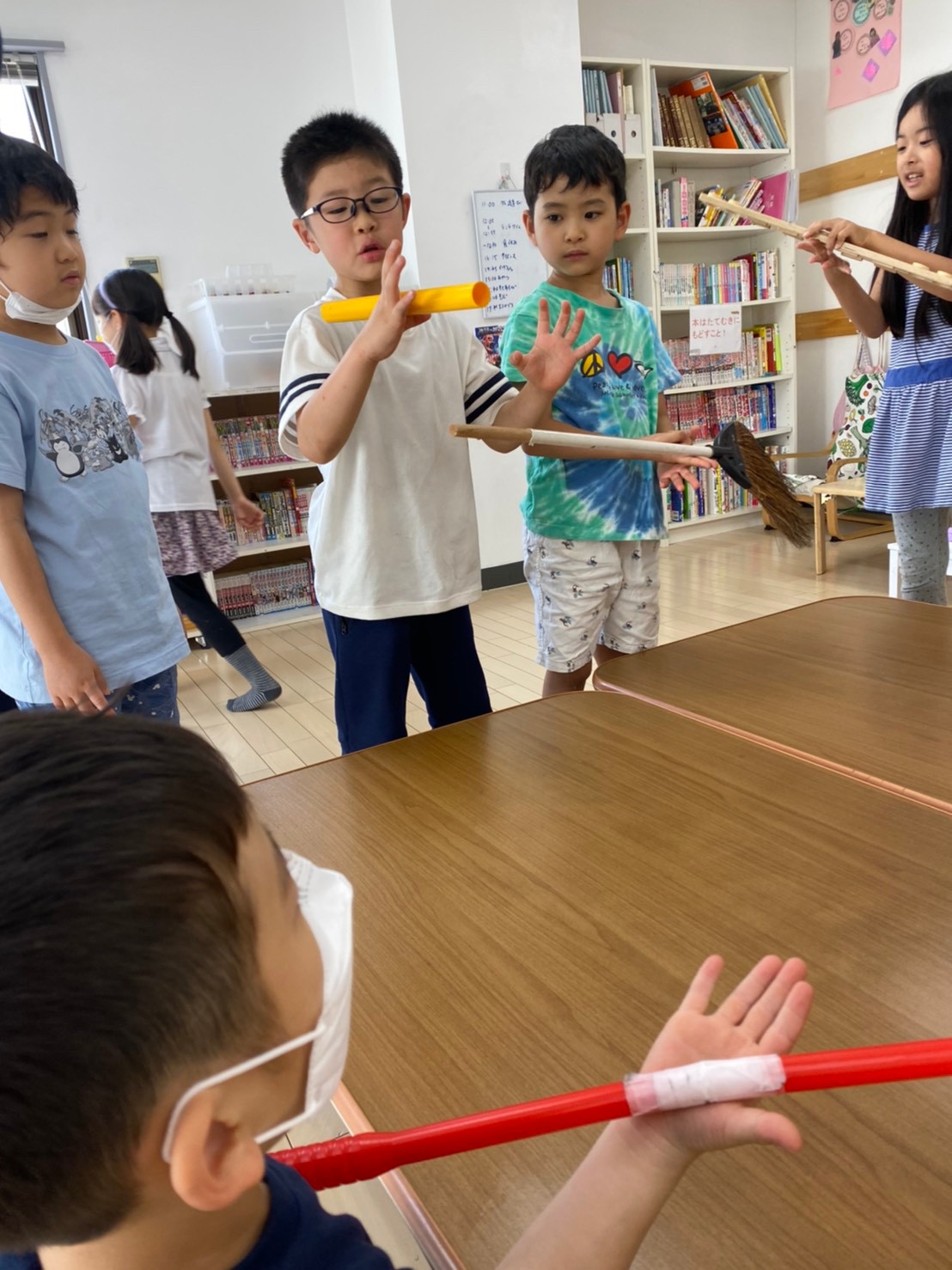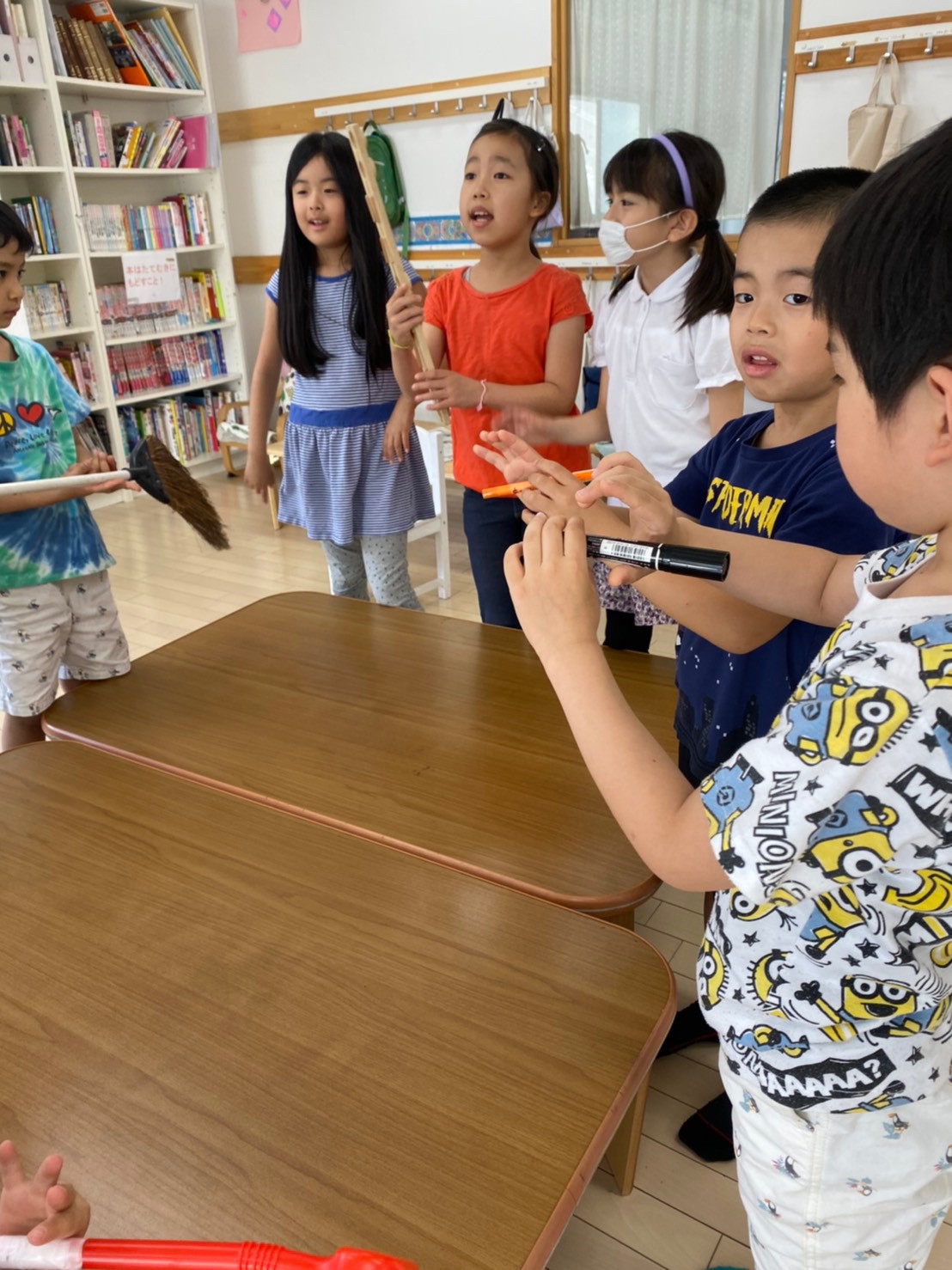 ペンやほうきなど、学童内にある物はほとんど重心を探しました!