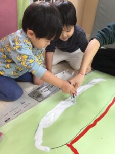 劇「てぶくろ」で使う大きな手袋をみんなで作りました🧤