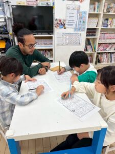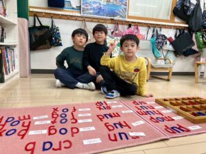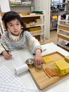 文の構成や文法記号の分析、ゴールデンビーズやチェッカーボードを使った数の活動にも取り組みました。
