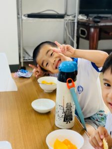 おやつの時間はみんなで楽しくお話ししながら食べています。