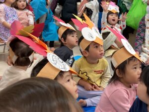 遠いアメリカでは「サンクスギビング・デー(感謝祭)」という大切な祝日があります。日頃の恵みや、家族・友人に感謝を捧げるこの行事を、今年も保育園で楽しく行いました。