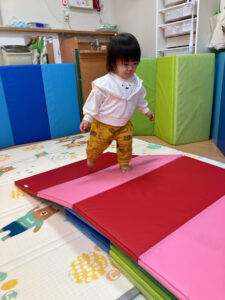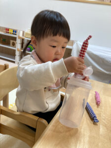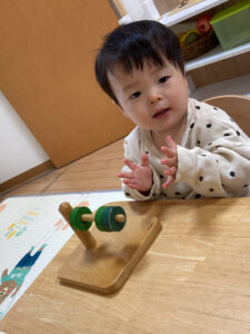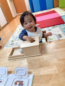 アトムクラス(0歳児)のモンテッソーリ活動の様子です 😛