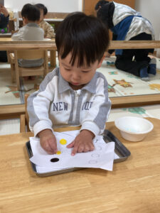 集中してお仕事ができるようになってきたアトムさん。保育者が見本を見せると上手に真似をして、嬉しそうに拍手をする姿は可愛くてたまりません!