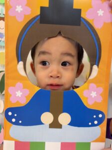 うれしいひなまつりを歌ったり、お内裏様・お雛様の顔はめパネルに参加したりと楽しんだ子どもたち 🙂
