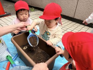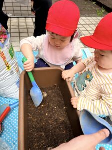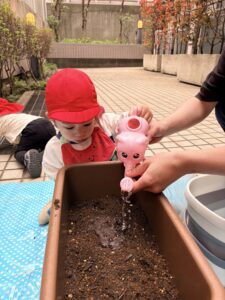 種芋をそっとプランターに植えて、「大きくなってね〜!」と優しく声をかける姿がとても可愛らしかったです。