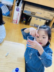 今月の理科実験は、スライムを作りました!!毎年恒例のスライム作りですが、