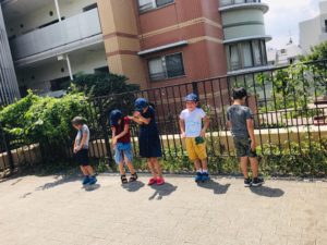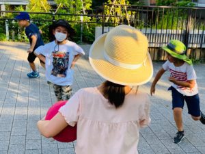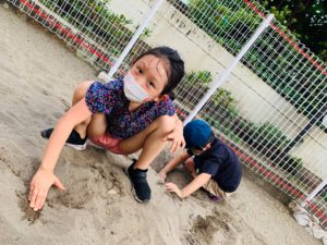 外遊びも欠かさず毎日行きました。近くの公園に行き、鬼ごっこや砂遊びを楽しんだり