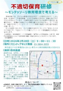 9時~11時30分 「不適切保育研修~モンテッソーリ教育理念で考える~」