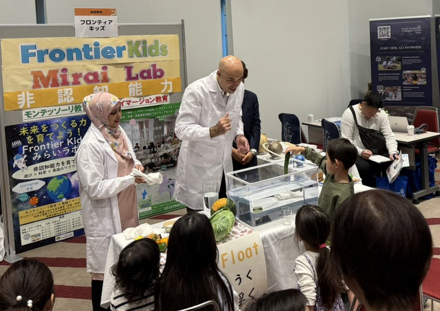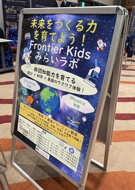 当イベントは、未就学児~小学生の親子を対象とした、習い事や学びの体験ができるイベントです。 弊社では、「モンテッソーリ教育×グローバル教育」をテーマに、「太陽系の惑星」「ものの浮き沈み」の2つの親子参加型の学び体験を実施しました! Frontierkids Global SchoolとFrontierkids Ichigayaが誇る保育者が、英語と日本語をうまく織り交ぜながら進行。毎回立ち見も出るほどの大盛況で、お子さまも保護者の方も一緒に楽しみながら学べる時間となりました 😀