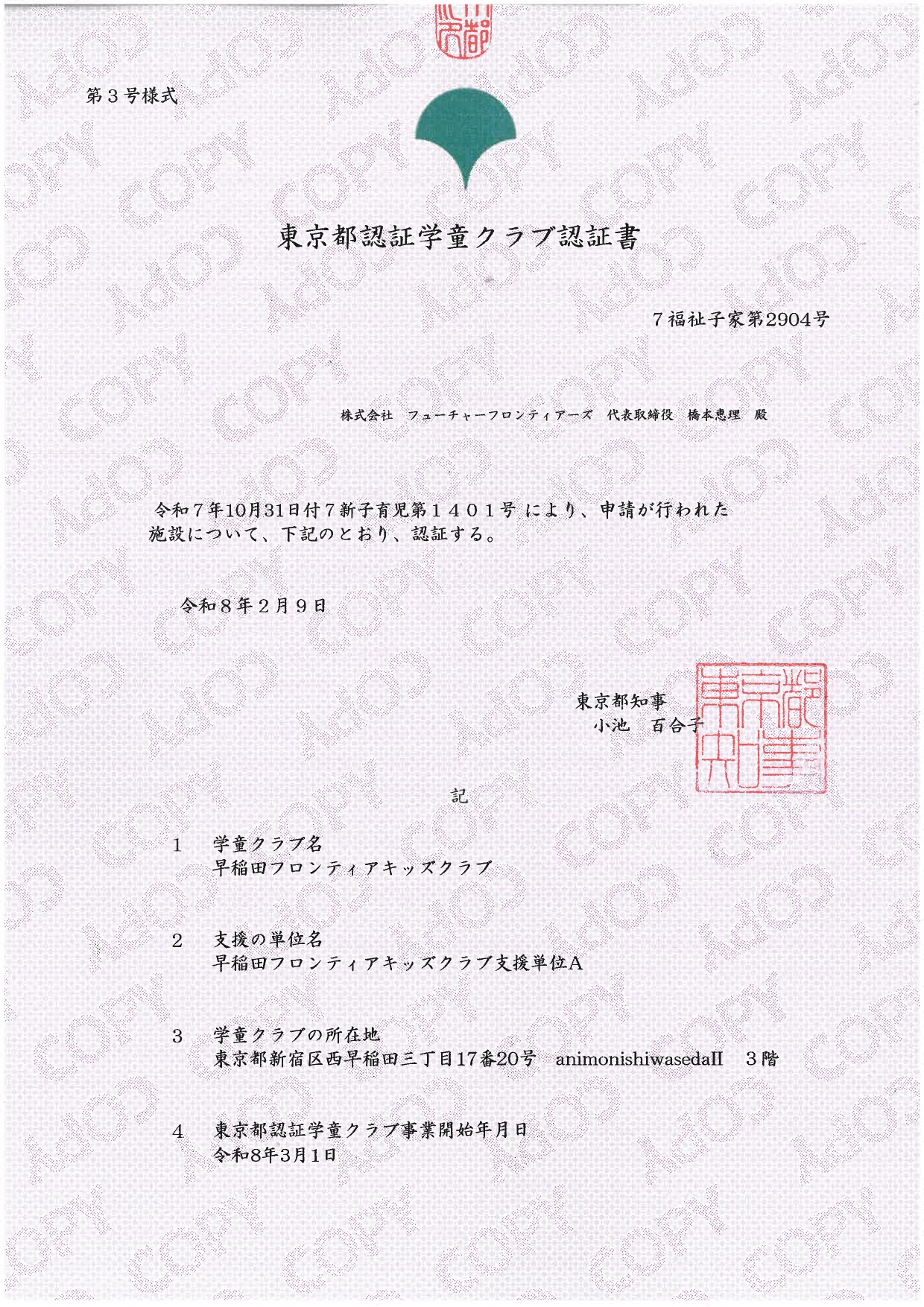 新宿区民間学童クラブである早稲田フロンティアキッズクラブですが、2026年3月より「東京都認証学童クラブ」へ移行することとなりましたので、お知らせいたします。