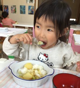 保育園のクッキングでは、普段通りに日本のお米を使いました。
