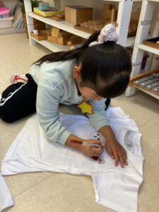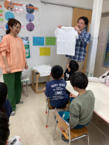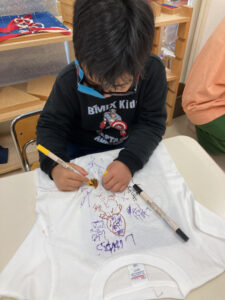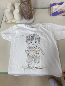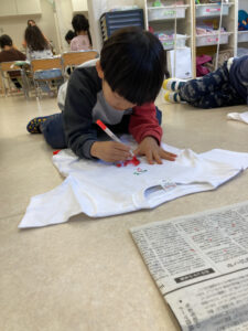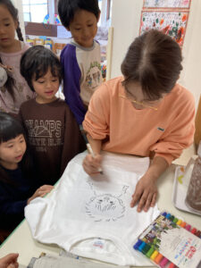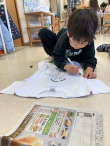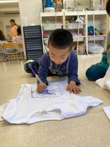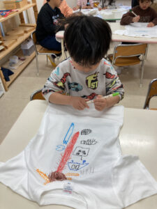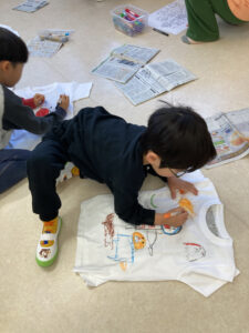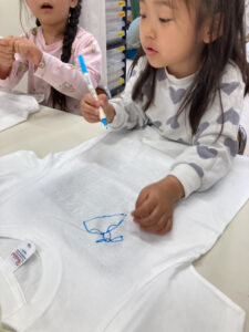 昨日、幼児クラスではすくわく活動の一環として「Tシャツ作り」を楽しみました。